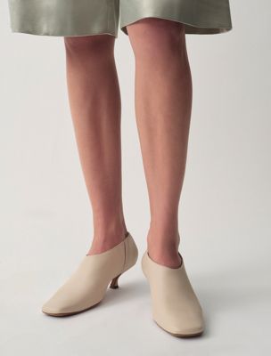 Ces bottines basses en cuir nappa souple reposent sur une base structurée avec une semelle en nubuck.
