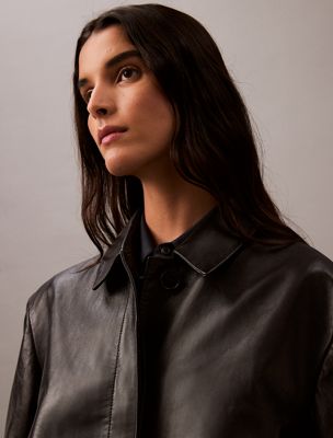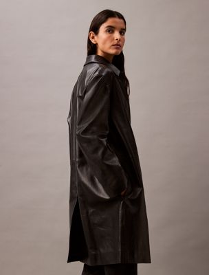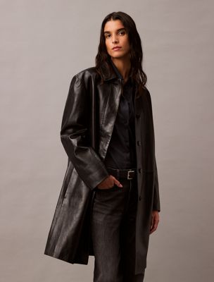 Confectionné en cuir de qualité supérieure, cet élégant manteau accompagnera vos tenues soignées. Modèle à manches longues et un col en pointe. Ce modèle est agrémenté de boutons dissimulés, le bouton du haut étant apparent.