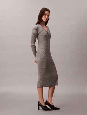 Robe longueur midi côtelée en mouliné de coton