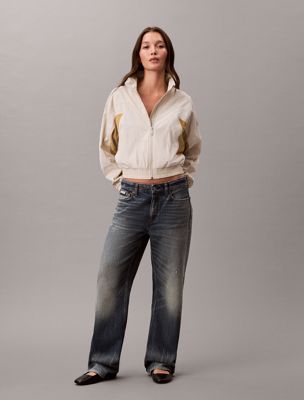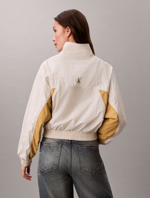 € 159,90(incl. BTW)Dit op atletiek geïnspireerde jack valt op door de wijde dolmanmouwen, korte pasvorm en contrastkleurige styling.
