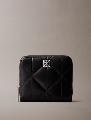 Doorgestikte vierkante portemonnee met logo embleem en rits