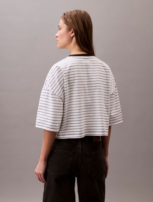 Gestreept cropped boxy shirt