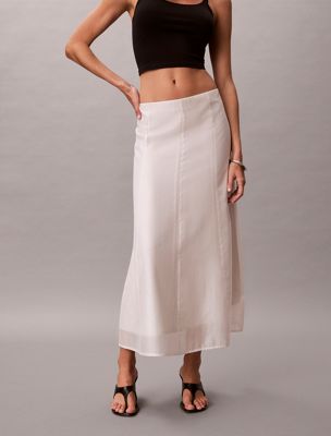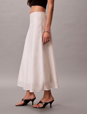 Deze rok is gemaakt van transparante, lichtgewicht voile met daaronder een voering om diepte en beweging te creëren.